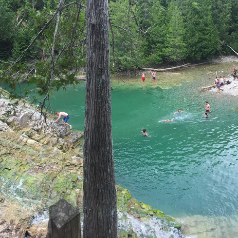 Notes : Les chutes sont impressionnantes. L'eau est vraiment émeraude et tu vois très bien les rochers dans le fond de l'eau. Cette dernière est par contre très froide. Je te suggère fortement d'aller te baigner dans cette eau, mais seulement quelques minutes, pour ne pas faire d'hypothermie. Tu peux même gravir les rochers de la chute, puis sauter en bas en faisant un de tes plus beaux plongeons.